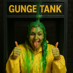 Welcome to the cozy, yet epic holiday bash with Bratty! She is inspecting the rented venue dressed very chic in her off the shoulders cream sweater and fuzzy plaid skirt. With hair and make up in place, she walks in and is flabbergasted at the state of the hot tub! Demanding for the host of the venue to explain this atrocity, he has her on her knees bitching for the tub to be filled-and well he fills it! She gets a big bucket of red gunge from a high "waterfall spout" and then before she can get a bratty word out, it's filled with another bucket full of green gunge! Sputtering and trying to keep her top up as she is trying to maintain her composure, Bratty is upset, yet delighted underneath it all to have such a lovely mixture to play in! Getting back to business, she demands to know the status of the dessert that she ordered for the menu and it gets Delivered-hard! she gets a sloppy pie thrown hard at her face knocking her back! She removes her sweater and skirt to reveal a lacy red thong and notices the host ogling her! She banters with him and he delivers another sloppy pie right in her bratty face! She rubs it in to her body letting little moans and gasps slip out! Getting back to the party-the host explains that they had experimented with a new concept of delivering breakfast to rooms and again, Bratty is on her knees in confusion, only to get covered in a Ton of sausage gravy! Bratty for breakfast never sounded so good! Bratty ends the scene playing around and making a few slop pies and rubs the mixture alllll over! Do you want to party with Bratty?