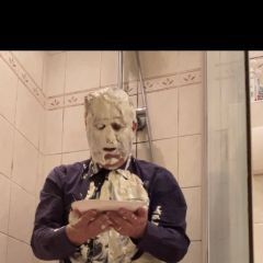 Messesoftheafternoon had cake thrown on him by Ready2Wam Studio